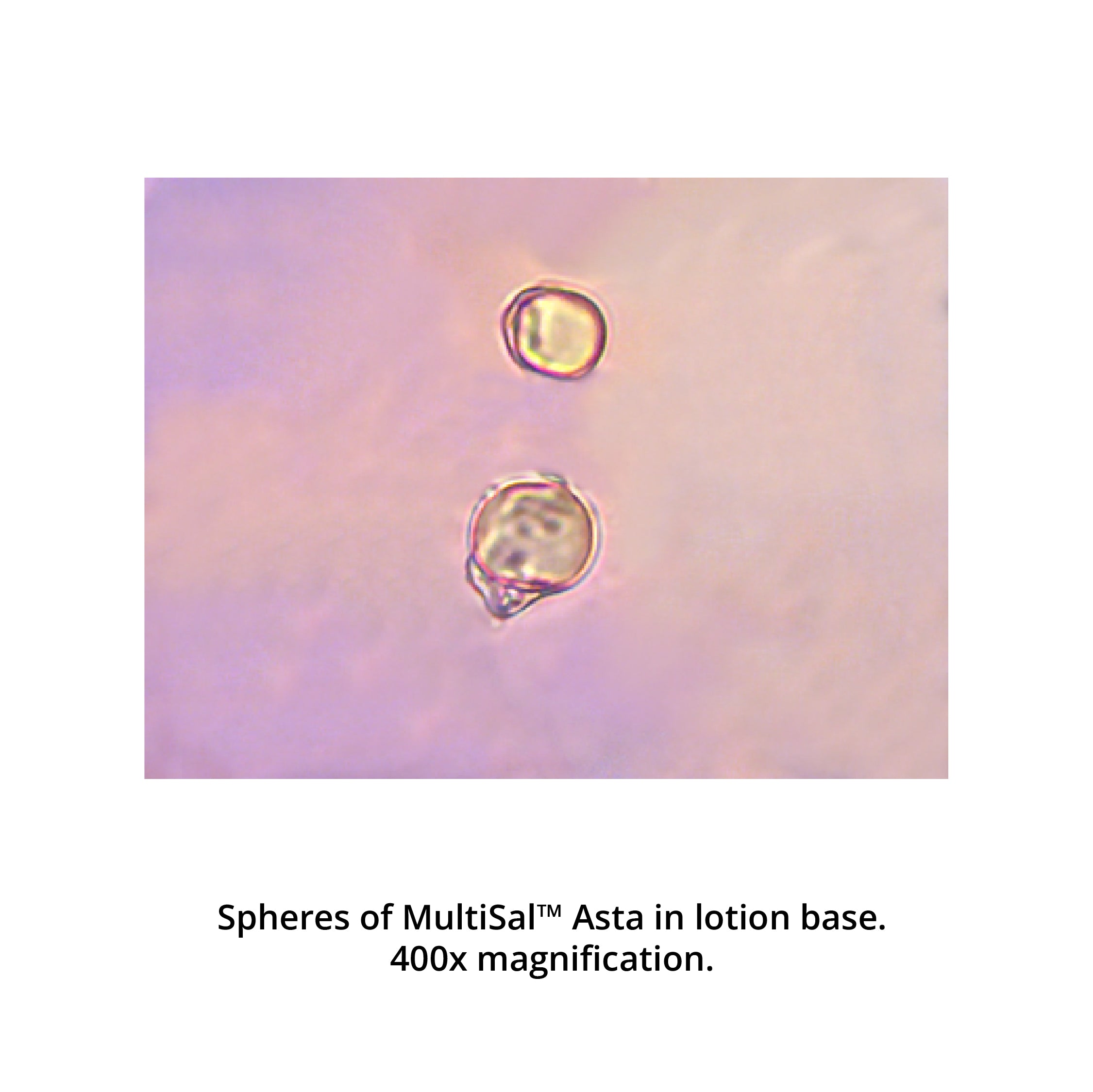 MultiSal® Asta (MS ASTA) is an advanced encapsulation technology that delivers the full strength of astaxanthin, one of nature’s most potent antioxidants validated by numerous clinical studies. Its double-layer microsphere system protects astaxanthin from oxidation, ensuring superior stability, enhanced bioavailability, and easy incorporation into a wide range of formulations. Encapsulation also reduces astaxanthin’s bold red color, resulting in a non-distinctive final product that expands formulation possibilities. For consumers, MS ASTA offers clinically proven anti-aging benefits, including reducing oxidative stress, defending against environmental damage, enhancing elasticity, and boosting radiance. For formulators, it provides a cost-effective, stable, and versatile solution for next-generation, science-backed skincare innovation.