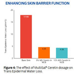 Incorporating MultiSal® Ceretin into formulations has shown remarkable results in clinical testing. When used in a natural cream base at 5% and 10% concentrations, it demonstrated a 400% improvement in skin barrier function by reducing trans-epidermal water loss (TEWL) and retaining moisture. Additionally, hydration levels in the stratum corneum increased by up to 33%, showcasing its ability to promote healthier, more youthful-looking skin.