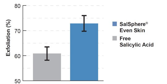 SalSphere® Even Skin is an advanced encapsulation system of salicylic acid that makes formulation easier, safer, and more versatile. For formulators, it ensures high stability, broad compatibility across multiple bases, and effortless integration into serums, creams, and washes. For consumers, it delivers visible results—smoothing texture, brightening tone, reducing hyperpigmentation, and minimizing blemishes. Its high load of encapsulated salicylic acid makes it ideal for gentle, skin-friendly acne care, effectively clearing breakouts without irritation. With consistent use, the skin looks clearer, brighter, and more youthful. SalSphere® Even Skin bridges formulation flexibility with consumer-proven performance.