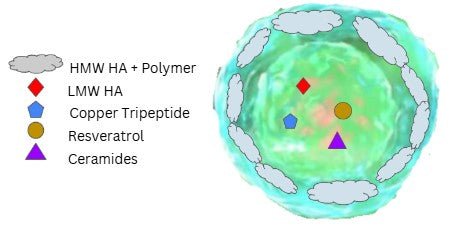 HydroSal® Youth is a cutting-edge skincare technology designed to rejuvenate and plump the skin by delivering a powerful blend of peptides, hyaluronic acid (HA) of varying molecular weights, ceramides, and resveratrol precisely where they are most needed ensures maximum penetration and effectiveness, overcoming the skin's natural hydrophobic barrier through a unique core-shell structure. The ceramide-lipid core encapsulates and protects the active ingredients, enabling them to reach deeper layers of the skin without degradation or oxidation. Surrounding this core, high molecular weight (HMW) HA and cellulose polymers form a hydrating barrier on the skin's surface, extending the actives' residence time and promoting a controlled release.